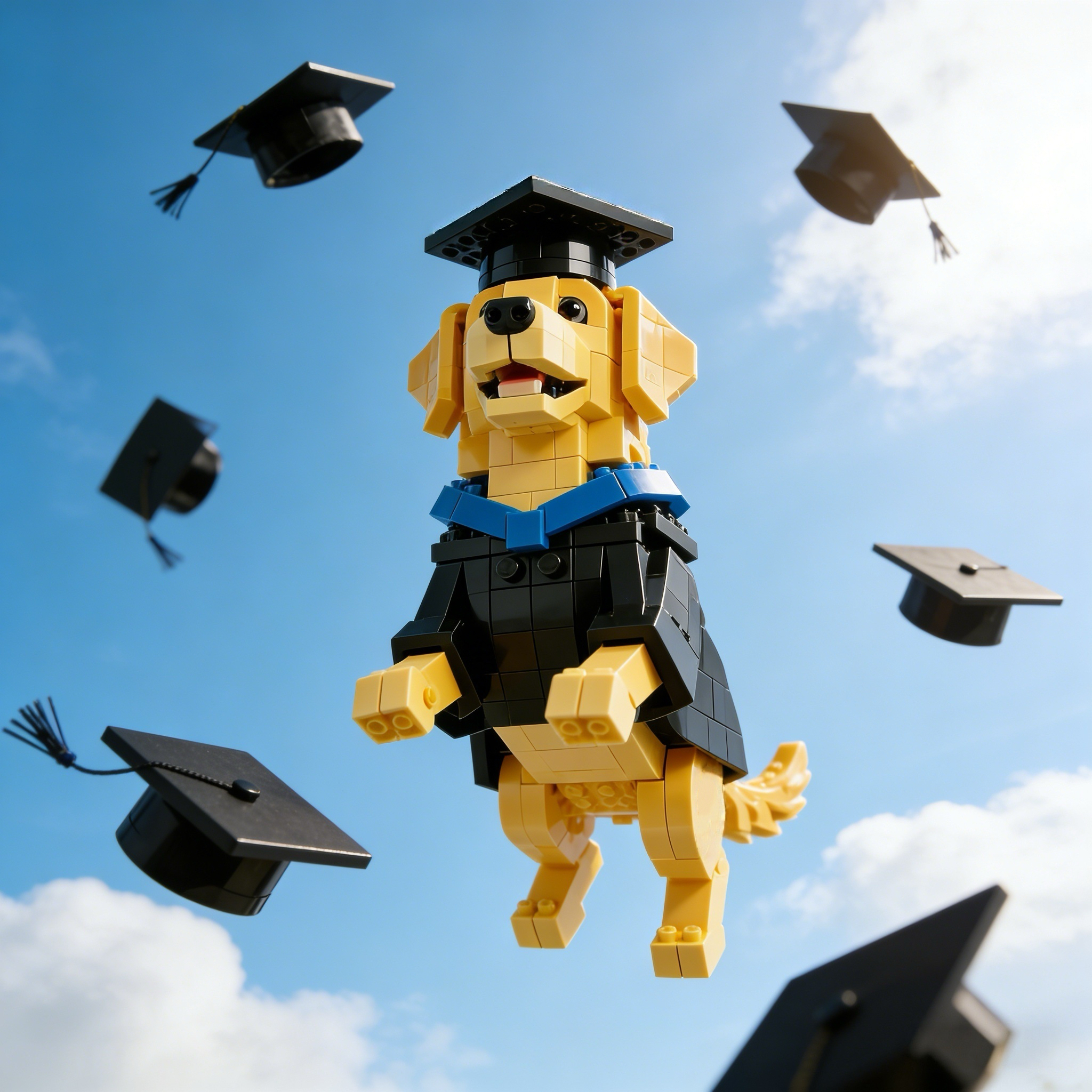 This graduation Golden Retriever isn’t just a cute display piece —