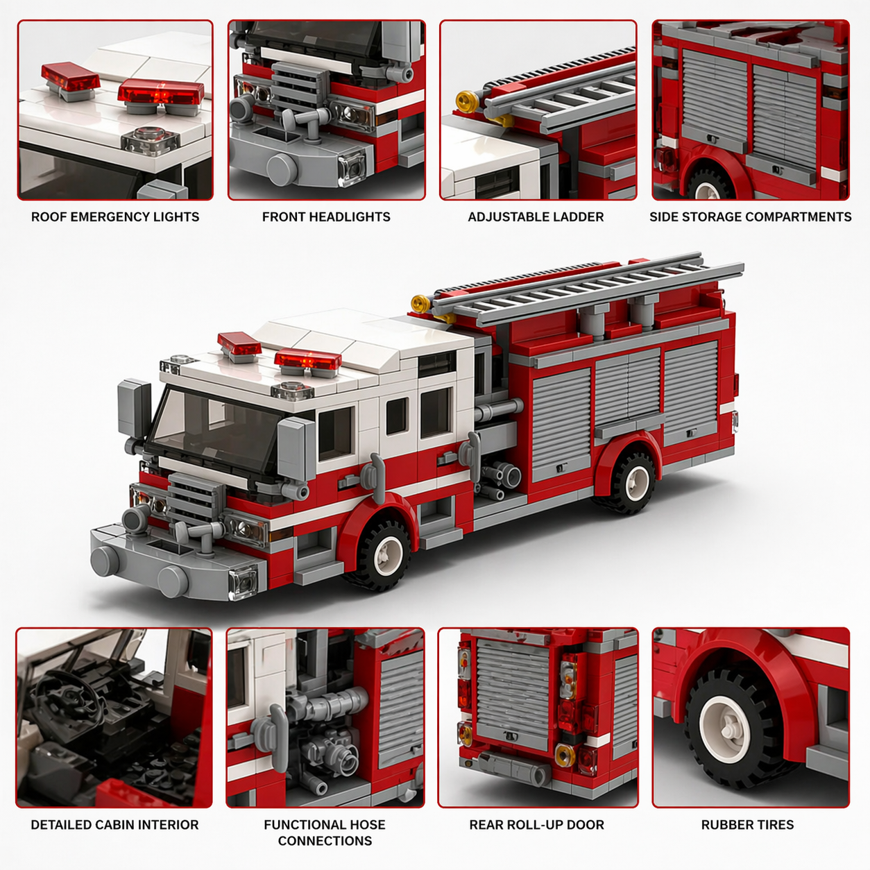 Designed with a classic emergency rescue look, this model features a detailed fire engine body, extendable ladder, and functional design elements. Every brick brings the rescue scene to life—delivering an immersive and meaningful building experience.