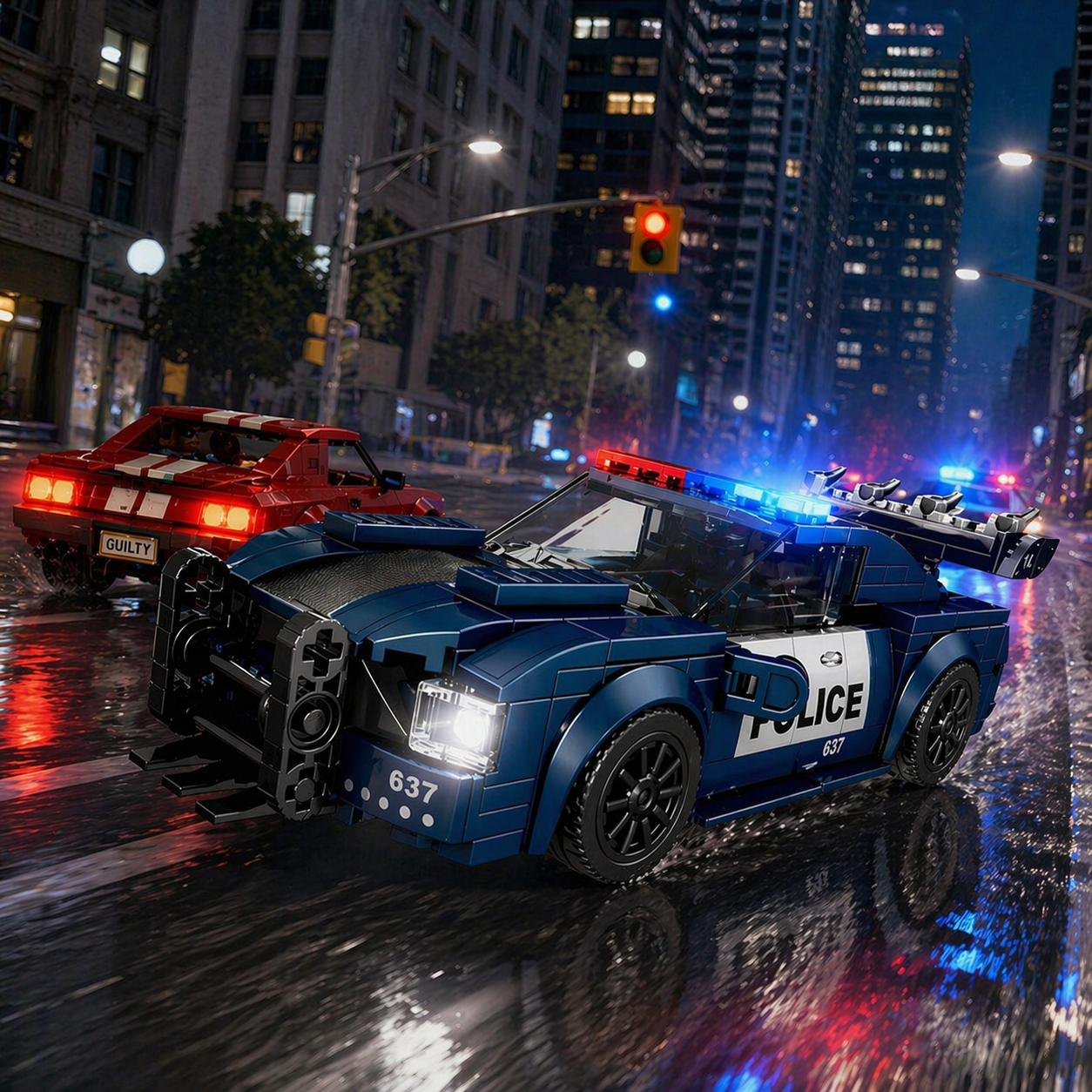 Feel the adrenaline of a high-speed urban pursuit. This sleek police interceptor combines aggressive styling with precision engineering — designed for builders who crave speed, power, and control.
